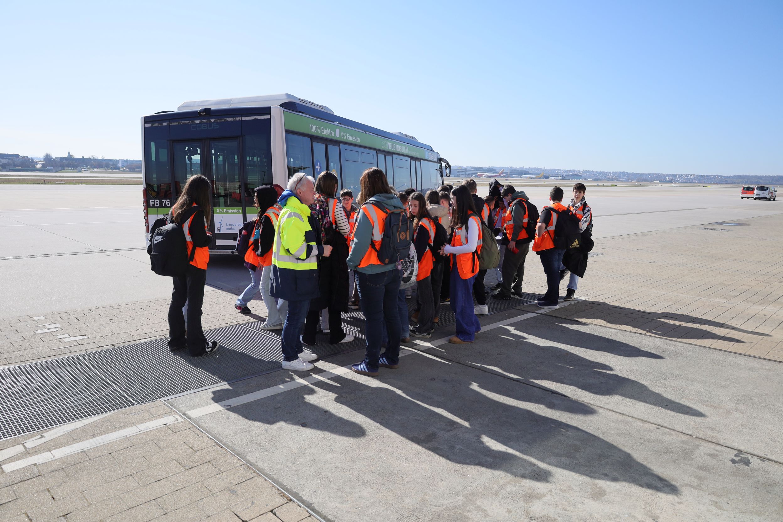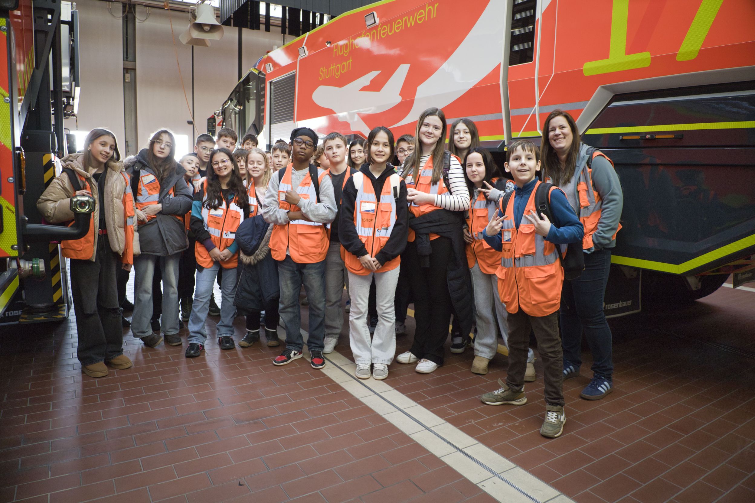 Ein besonderes Highlight war die anschließende Busfahrt über das Rollfeld. Aus nächster Nähe konnten die Schülerinnen und Schüler startende und landende Flugzeuge beobachten und erfuhren anschließend viel über die Arbeit der Flughafenfeuerwehr. Die beeindruckenden Einsatzfahrzeuge und die Größe des Geländes sorgten für staunende Gesichter.