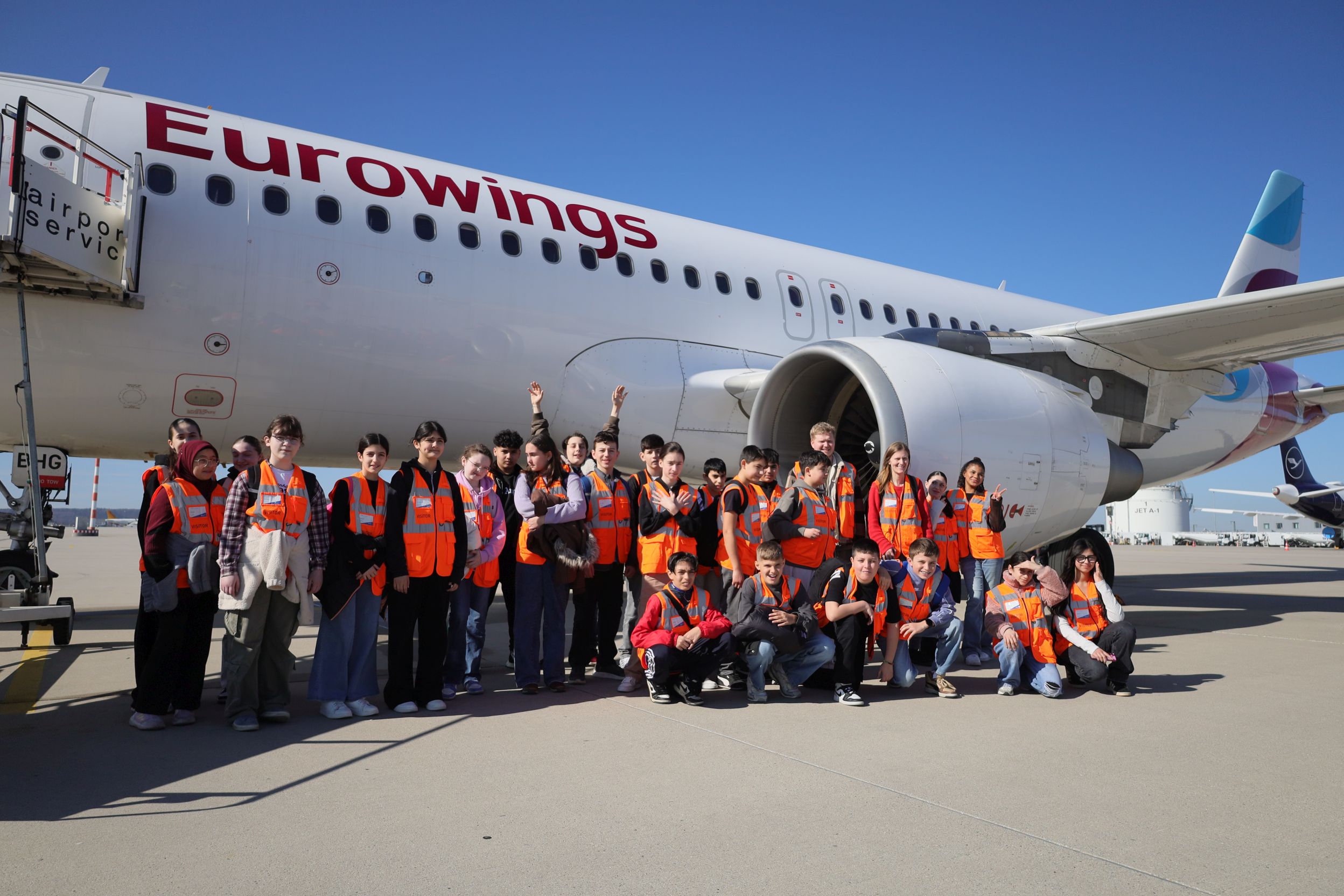 Zum Abschluss durfte jede Klasse ein gemeinsames Foto direkt vor einem Flugzeug machen – ein Moment, der vielen sicher lange in Erinnerung bleiben wird.