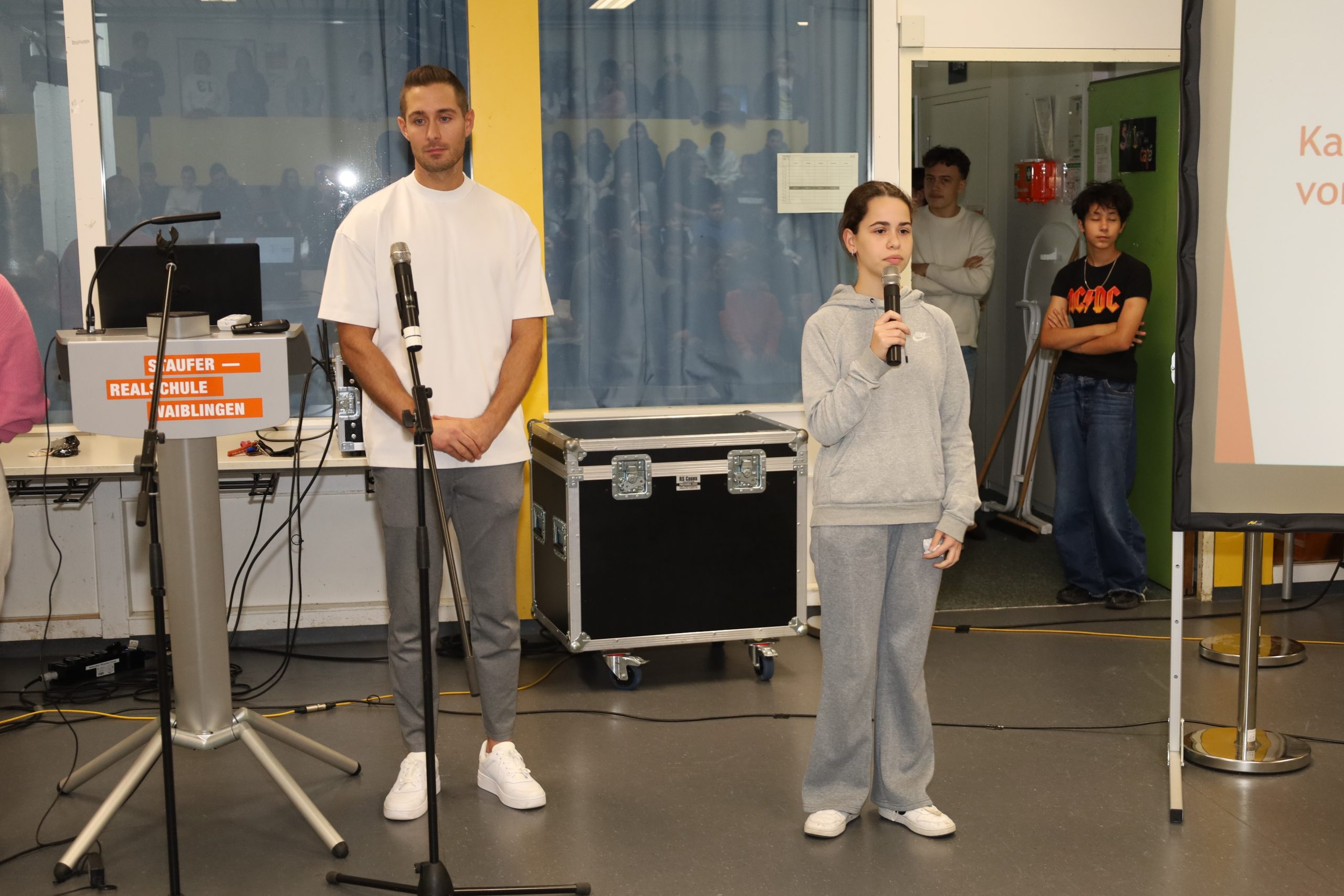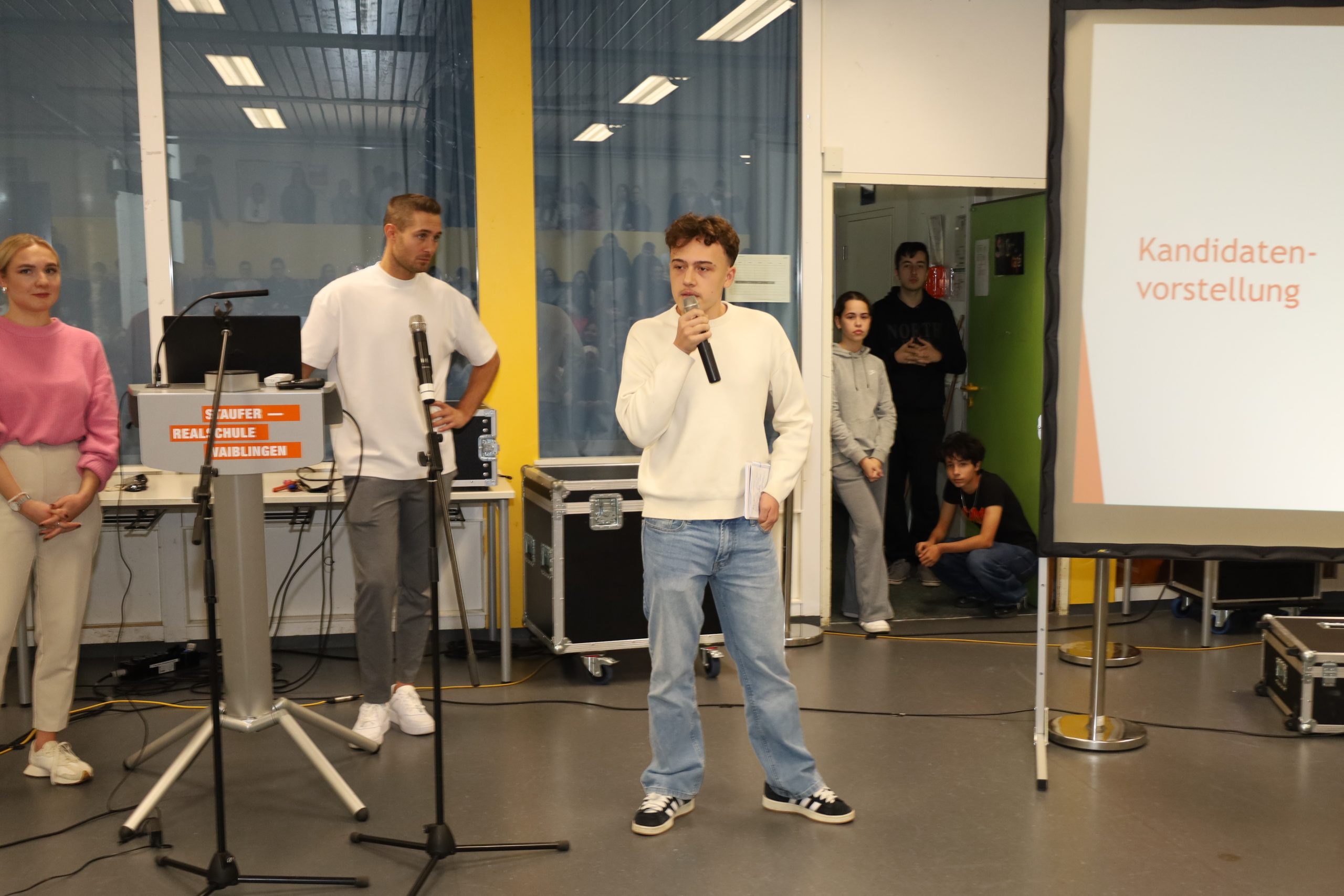Am 15. Oktober 2025 fand in der Aula der Staufer-Realschule eine Schülervollversammlung statt, bei der die Kandidaten für das Amt des Schülersprechers ihre Vorstellungen präsentierten. Fünf Schüler kandidierten in diesem Jahr und stellten ihre Wünsche und Pläne für die Zukunft vor.